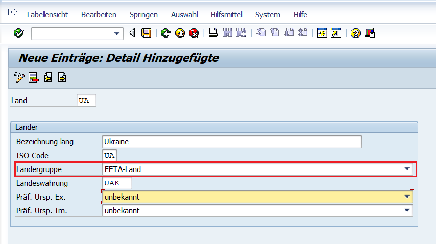 Ab 1. Oktober 2022 wird der Warenverkehr mit der Ukraine durch den Beitritt zum Übereinkommen über ein gemeinsames Versandverfahren vereinfacht. Für eine Zoll- oder Versandanmeldung von oder nach Ukraine mit unserer Zollsoftware pZoll bedeutet das folgendes: Teilen Sie das Land Ukraine DRINGEND noch am Freitag, den 30.09.2022, der Ländergruppe EFTA zu. Diese Änderungen sind spätestens vor der ersten Zoll- oder Versandanmeldung im Oktober vorzunehmen, sonst droht eine Fehlermeldung.