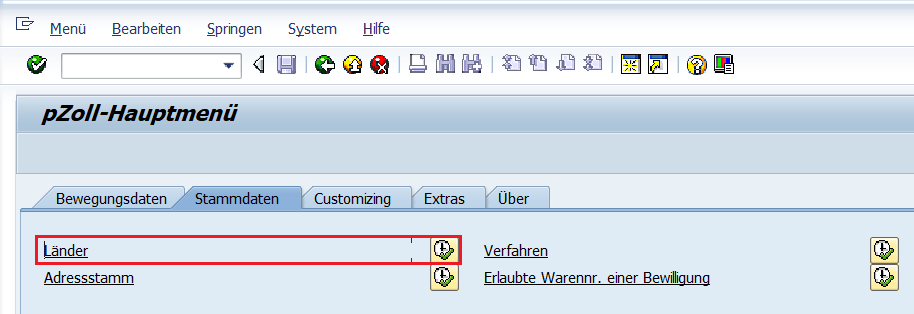 Gehen Sie im pZoll-Hauptmenü auf den Reiter „Stammdaten“ und klicken Sie auf „Länder“.