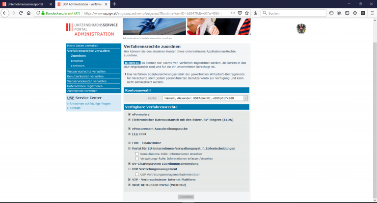 Prodata-Tipp: Treffen Sie bereits im Vorfeld alle Vorbereitungen für einen reibungslosen Ablauf. Für die Verwaltung sowie die Beantragung von zollrechtlichen Bewilligungen benötigen die Zollverantwortlichen Ihres Unternehmens ebenfalls Zugriff auf das Portal. Als Administrator dürfen Sie anschließend die Verfahrensrechte verwalten und Berechtigungen für Ihre Mitarbeiter freigeben. Wir empfehlen mehrere Benutzer mit jeweiliger Kennung via Handysignatur anzulegen.