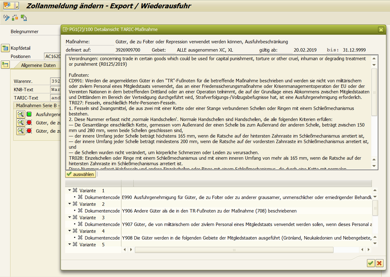 Mit pTaric4GTS haben Sie die Möglichkeit, die Unvollständigkeitsprüfung bei Erstellung des Zollbelegs um Prüfungen, die auf die TARIC3-Maßnahmen aufbauen, zu erweitern.