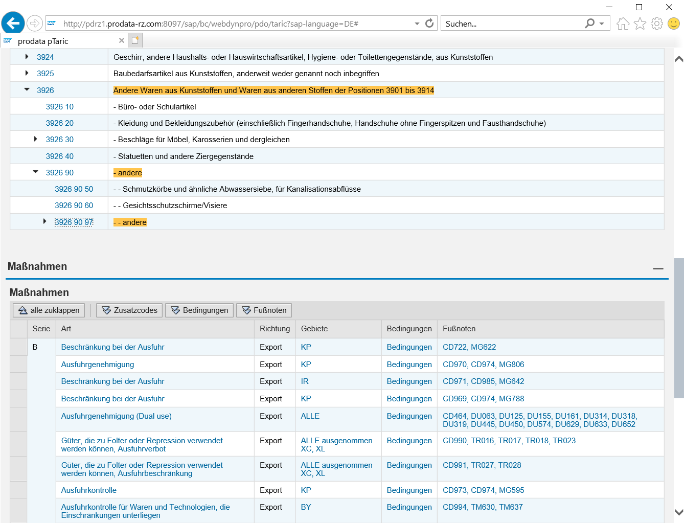 pTaric4GTS ist eine nützliche Erweiterung, die direkt in SAP® GTS integriert werden kann. Es unterstützt Sie bei der korrekten Bearbeitung Ihrer Zollbelege und ermöglicht Ihnen einen schnellen und komfortablen Zugriff auf aktuelle TARIC-Maßnahmen sowie Verbote und Beschränkungen (VuB).