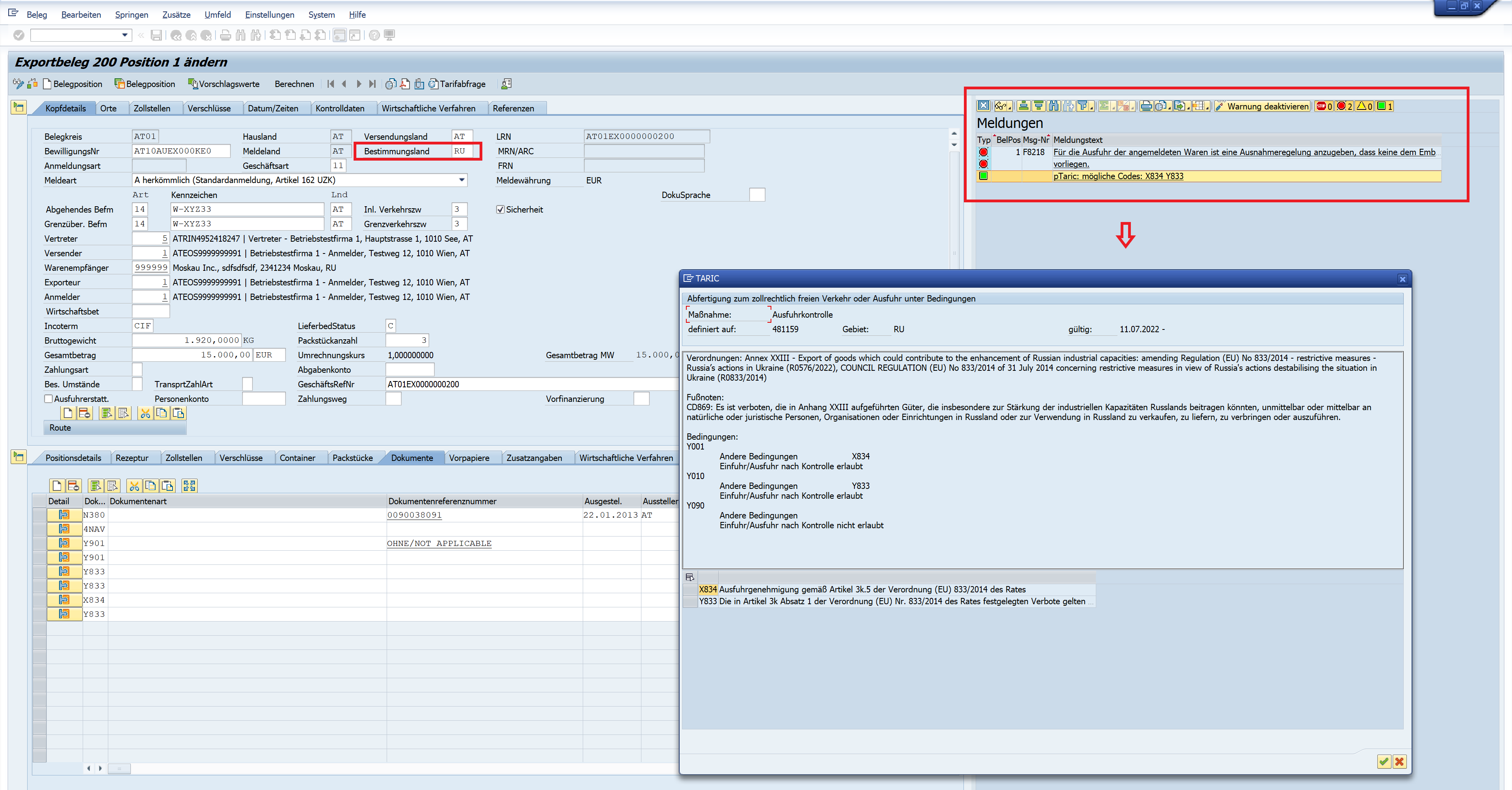 Was darf exportiert werden und unter welchen Bedingungen? Welcher Dokumentenartencode wird dafür benötigt? Was heute erlaubt ist, ist morgen vielleicht bereits verboten.