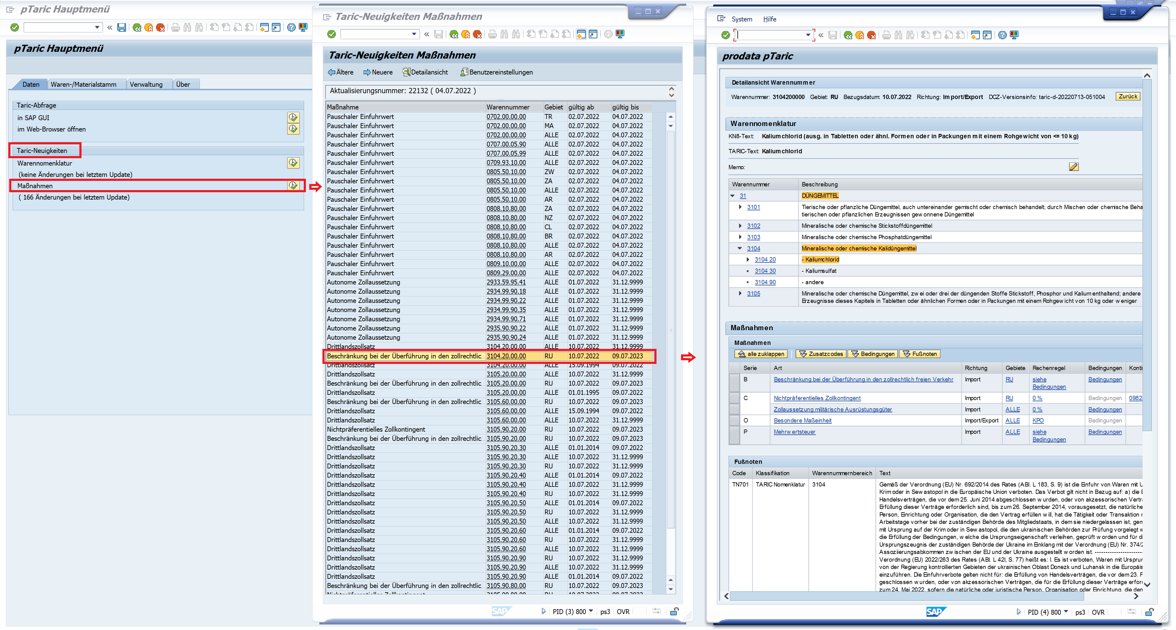 Die Anzahl der Sanktionsmaßnahmen gegen Russland, Belarus und Co nimmt in der heutigen Zeit so schnell zu, dass man Mühe hat hinterher zu kommen. Abhilfe schafft das Tool pTaric, welches als nützliche Erweiterung zu unserer SAP® integrierten Zollsoftware pZoll zu sehen ist. Es prüft zuverlässig mit tagesaktuellen Daten gegen häufige e-zoll Fehlermeldungen. Sie sparen Zeit bei der Zollanmeldung, verhindern nicht zulässige Ausfuhren sowie Einfuhren und erlangen Sicherheit bei der korrekten Klassifizierung und Vergabe von Codierungen.